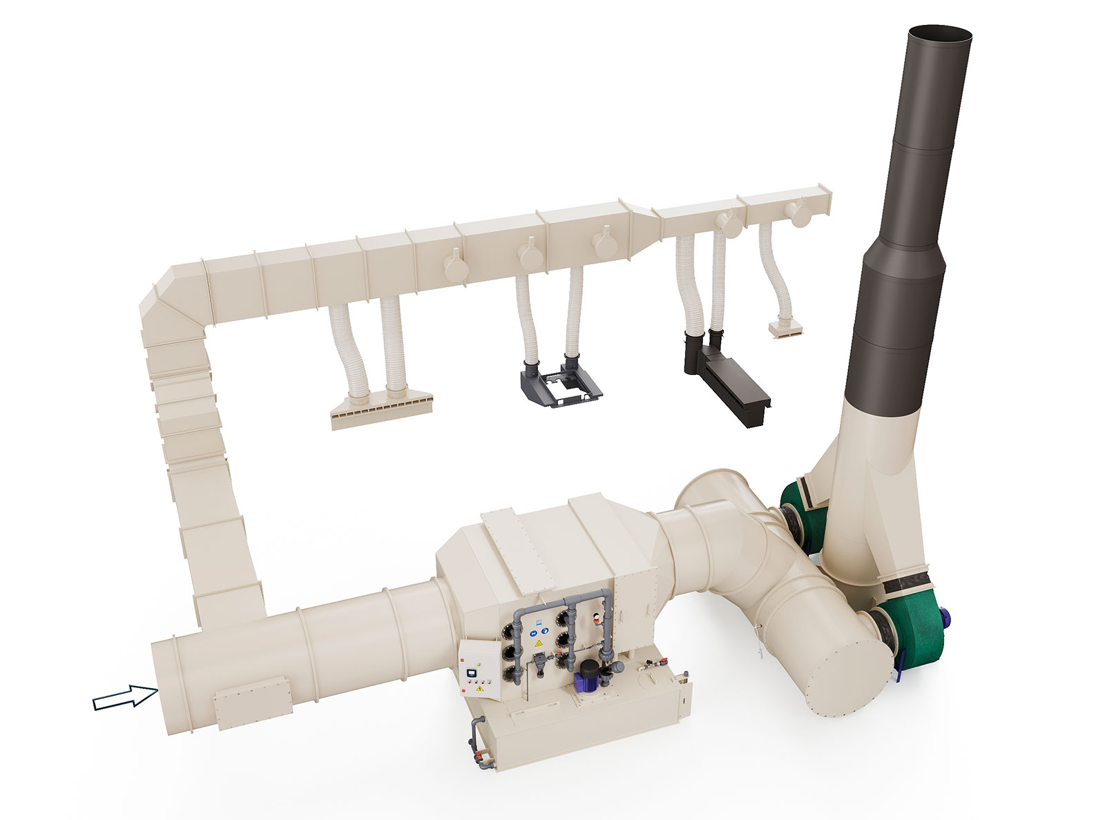Справиться с проблемой загрязнения воздуха в цехе и обеспечить безопасные условия труда для персонала позволяет вентиляционное оборудование – набор приспособлений и технических узлов для отведения загрязненного воздуха за пределы помещения. Учитывая особенности гальванического производства и физико-химические свойства рабочих растворов, целесообразно использование как общих, так и местных устройств, установленных в непосредственной близости от зон химической и электрохимической обработки деталей.